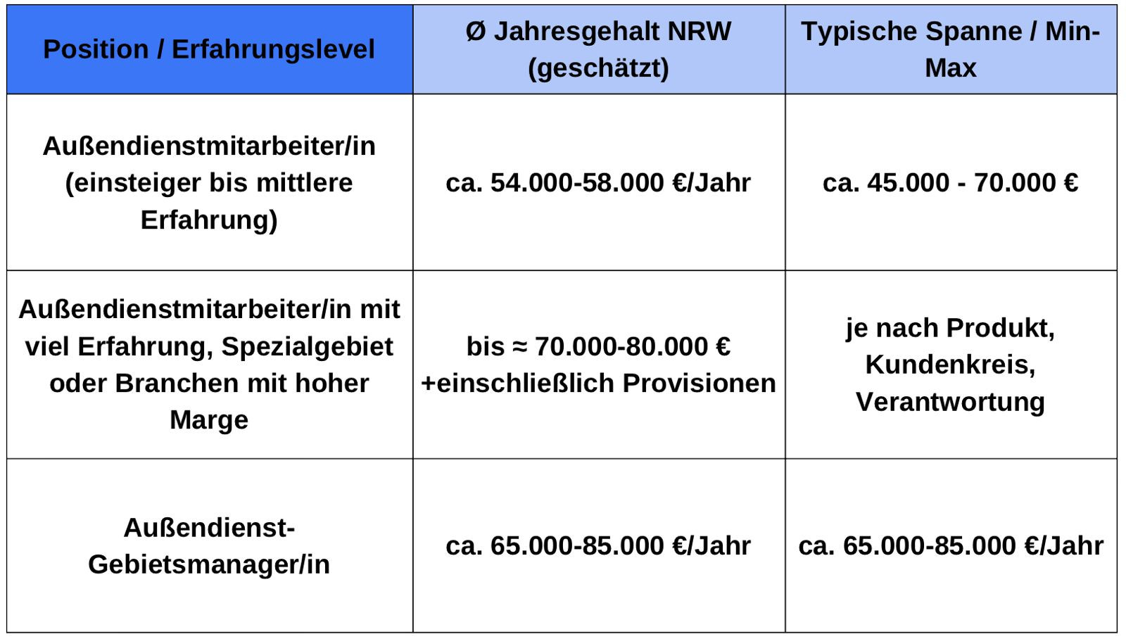 1. Gehälter im Außendienst in NRW: aktuelle Daten & Einflussfaktoren