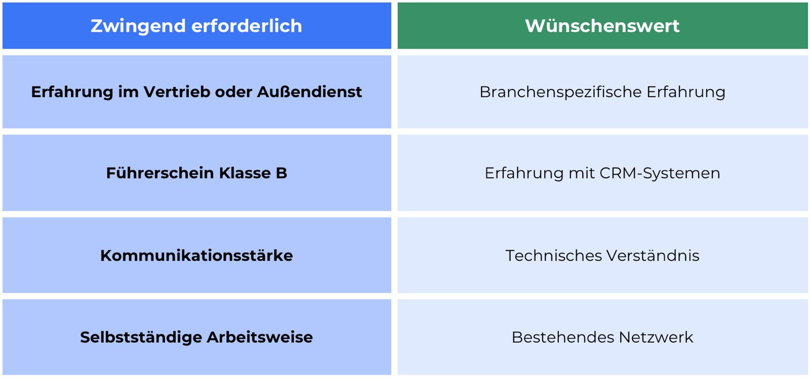 Sinnvoll ist es, zwischen zwingenden Voraussetzungen und wünschenswerten Kenntnissen zu unterscheiden. Das signalisiert Offenheit und erhöht die Bewerbungsbereitschaft.