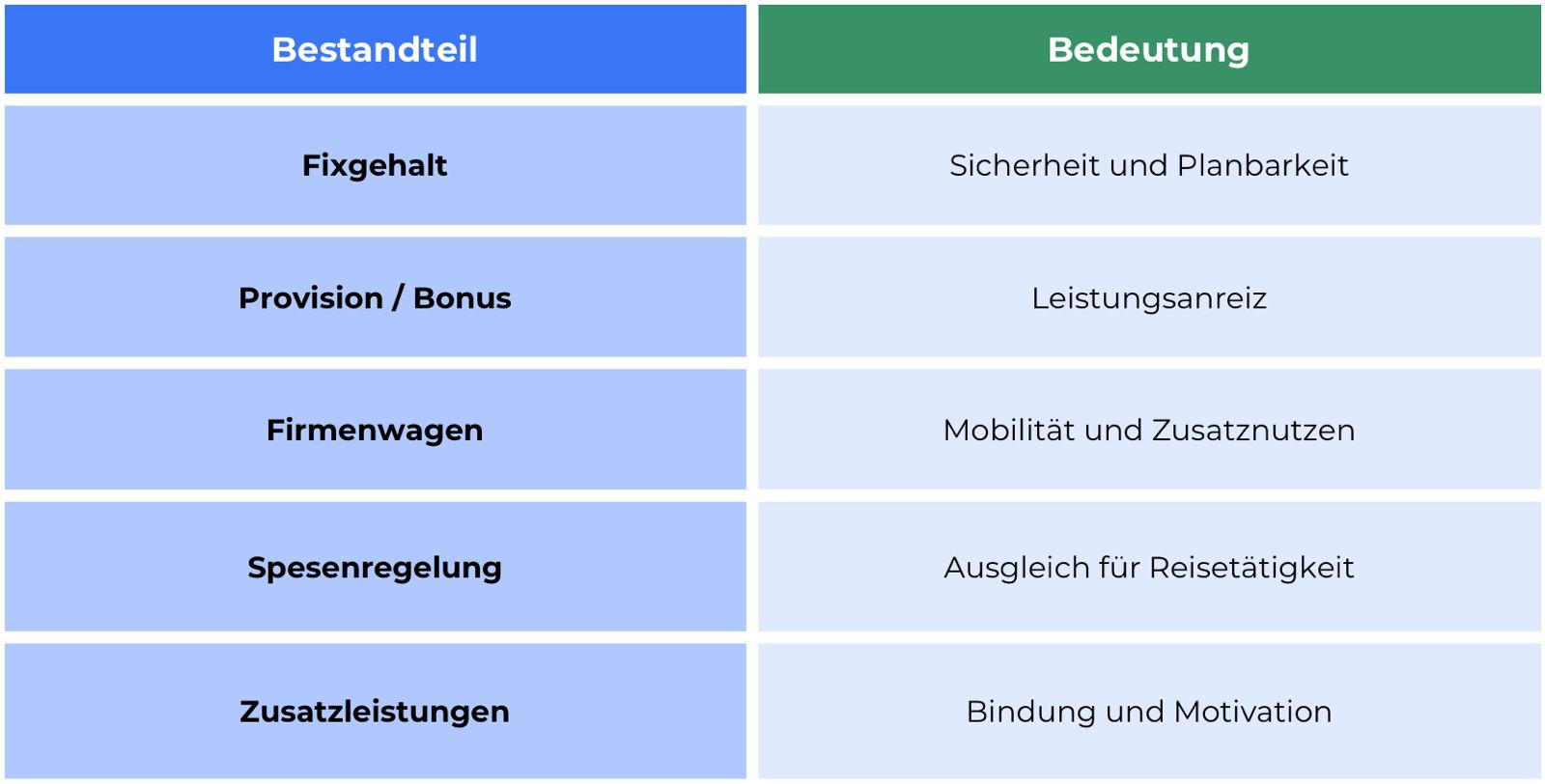 Typische Vergütungs- und Benefit-Bausteine im Außendienst