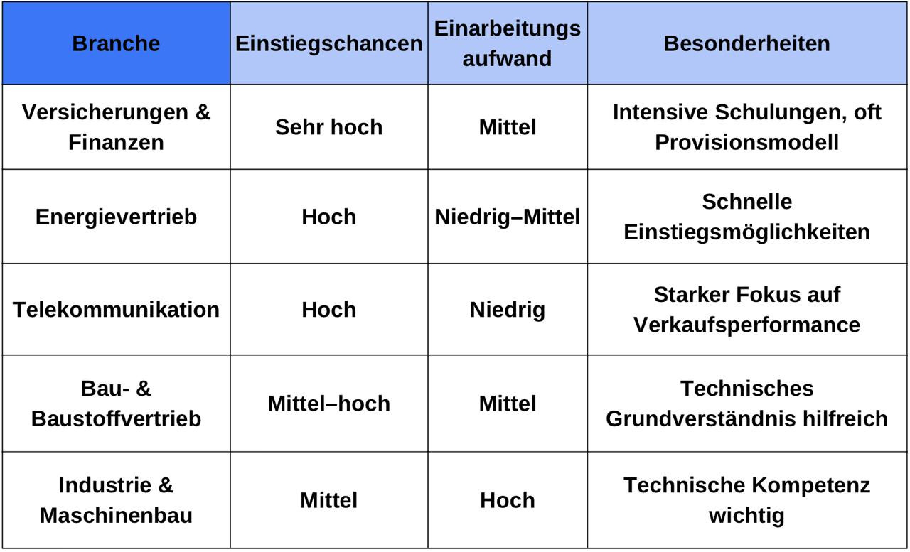 Nicht jede Branche im Außendienst ist gleichermaßen zugänglich. Während hochspezialisierte technische Vertriebsrollen häufig Fachwissen voraussetzen, gibt es zahlreiche Bereiche mit strukturierter Einarbeitung.