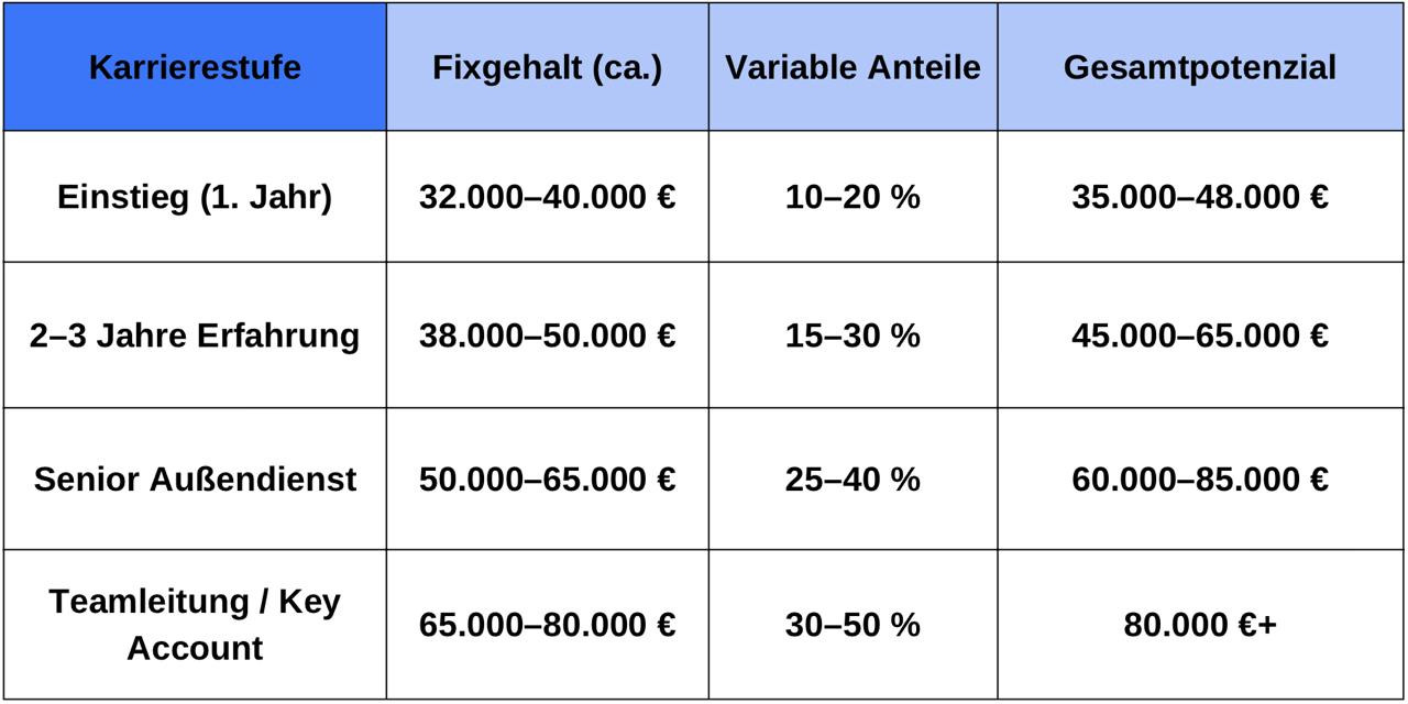 Ein häufiges Motiv für den Wechsel in den Außendienst ist das Einkommenspotenzial. Während viele Berufe fixe Gehaltsgrenzen haben, ermöglicht der Vertrieb leistungsabhängige Entwicklung.