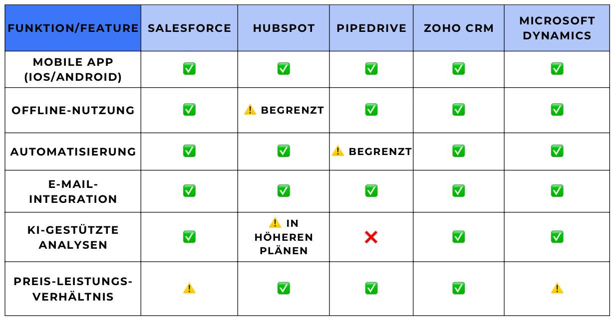 - Nachteil: Weniger umfangreich in Marketing-Automation als Salesforce oder HubSpot.
