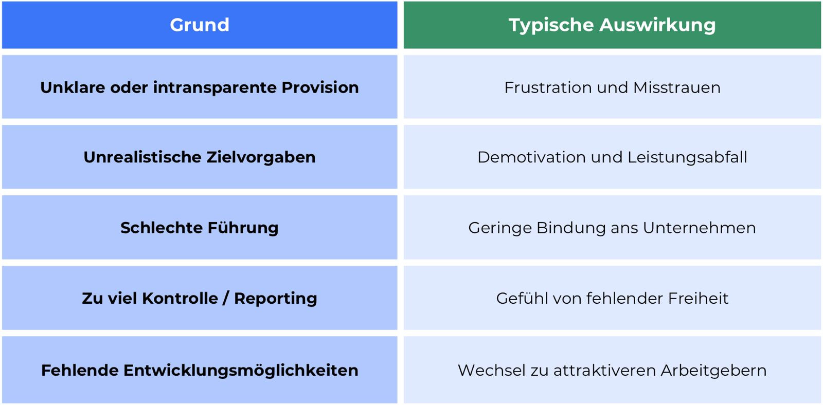 Die Gründe für einen Jobwechsel sind selten zufällig. In den meisten Fällen handelt es sich um strukturelle Probleme, die sich über Zeit aufbauen. Auffällig ist: Gerade leistungsstarke Mitarbeiter haben oft die besten Alternativen, und wechseln deshalb schneller.