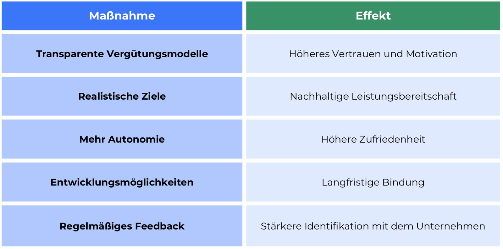 Regelmäßige Gespräche, ehrliches Feedback und sichtbare Wertschätzung machen hier einen großen Unterschied.